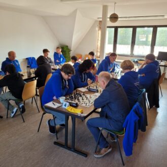 Am 28. April 2024 trat unser TSV Bindlach Aktionär dann in der 9. Runde der Landesliga Nord gegen den PTSV SK Hof 1 an und sicherte sich einen knappen 4½ – 3½ Sieg. Dieser Erfolg trug letztlich entscheidend zur Meisterschaft bei, da man so Erlangen noch überholte, und unterstrich die starke Teamleistung während der gesamten Saison. Die einzelnen Partieergebnisse könnt ihr im Folgenden entnehmen.