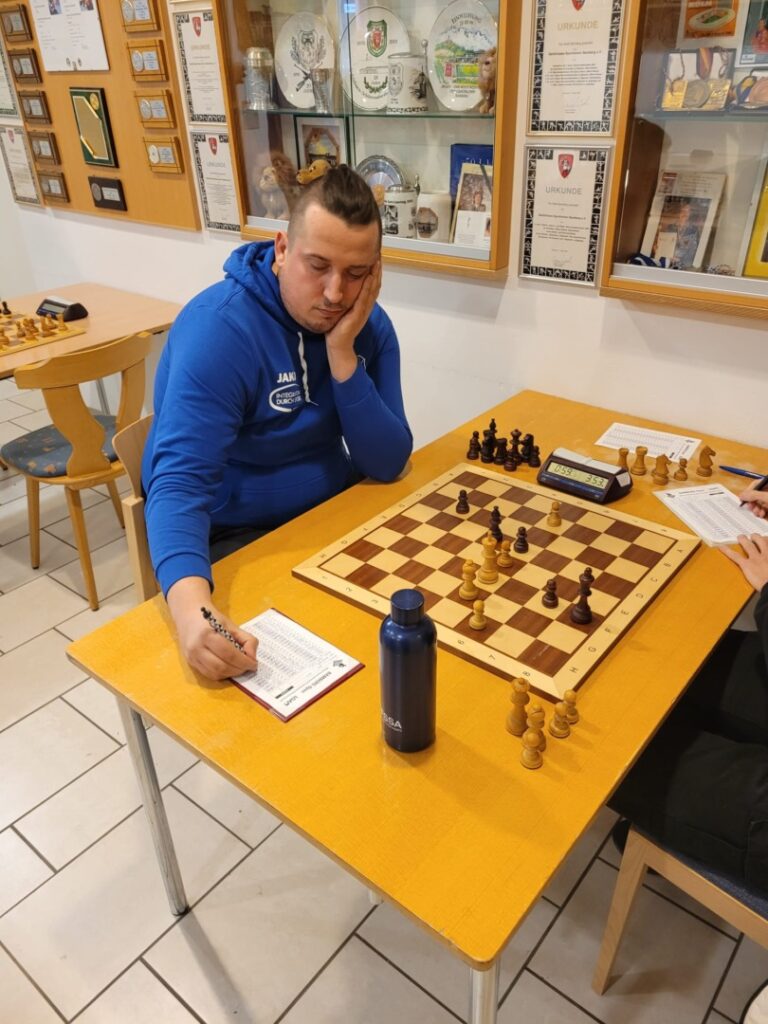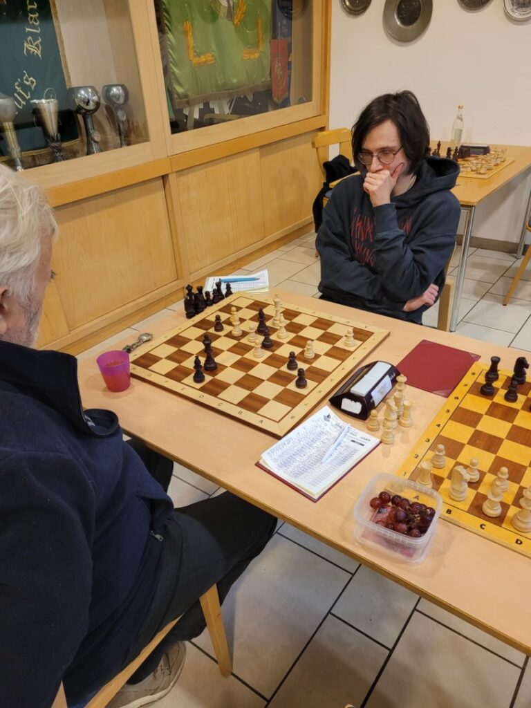 Den Ausgleich schaffte dann Tobias, der durch konstant aufgebauten Druck einen Bauern gewinnen konnte. Diesen Mehrbauern brachte er bis ins Läuferendspiel, wo seine starken Freibauern den Sieg brachten.