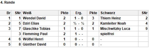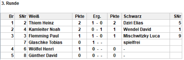 In der 3. Runde wurden dann die Auslosungsungenauigkeiten bereinigt und die beiden Jugendspieler wurden nicht mehr mit ausgelost.