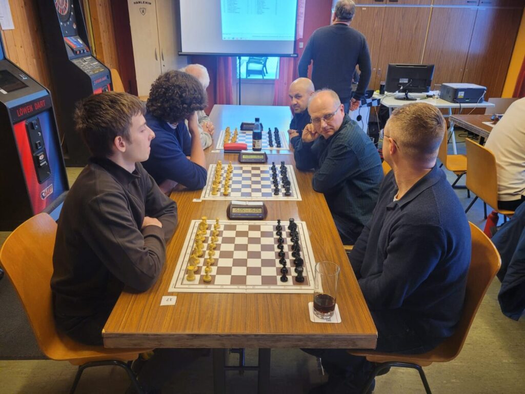 Somit wurde Tomas mit 5 Punkten insgesamt Platz 5. Daniel landete mit 4,5 Punkten auf Platz 7. David war überhaupt nicht zufrieden mit seiner Leistung, blieb hinter seinen Erwartungen zurück und erreichte mit 3 Punkten nur den 24 Platz. Knapp vor Norbert, der sein erstes gewertetes Schnellschachturnier spielte und als letzter Startplatz auf Platz 27 landete. Eine starke Leistung, wenn man bedenkt, dass Norbert erst seit dieser Saison im Verein spielt.