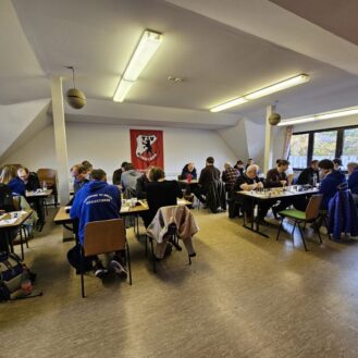 Damit stand es 2:5 und nur noch Matthias an Brett 1 spielte. Er war aufgrund einer Umleitung mit 15 Minuten Verspätung gestartet, hielt sich jedoch gegen seinen um 500 DWZ stärkeren Gegner lange Zeit ausgeglichen. Doch unter zunehmendem Zeitdruck musste auch er sich schließlich geschlagen geben.